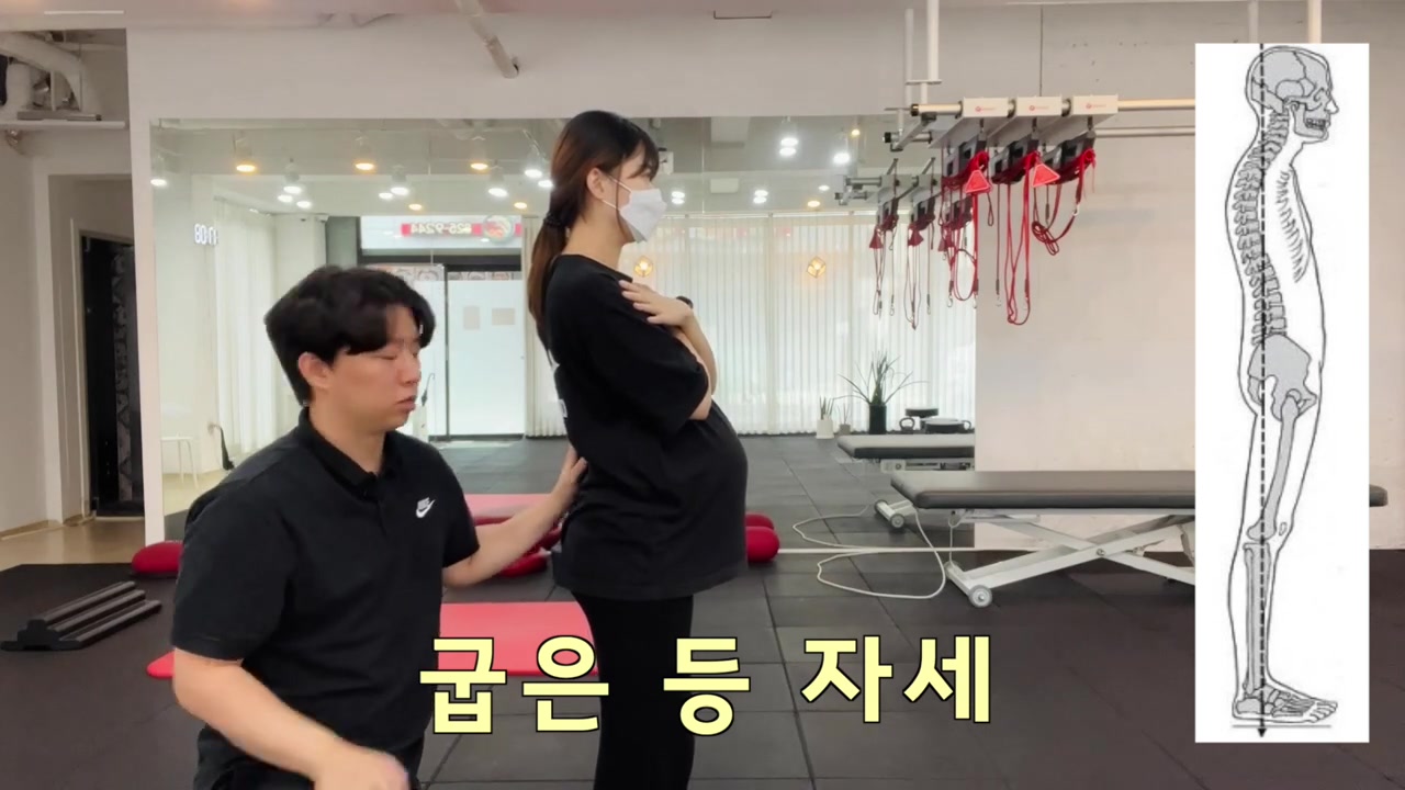 임신 중 허리는 골반이 전방 경사되어 있어 착각하기 쉬우나, 후방 경사인 경우도 있으므로 반드시 확인해야 해요.