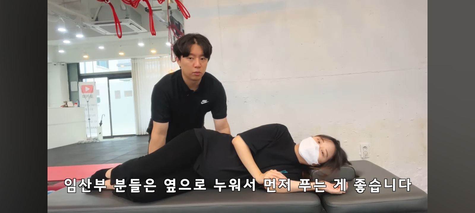 임산부는 옆으로 누워 먼저 마사지를 하느게 좋으며 먼저 앞뒤로 마사지를 해가며, 허리 통증 부담을 덜 느낄 수 있어요.
