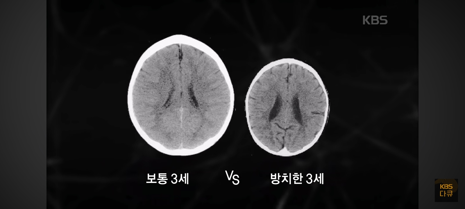 아이의 뇌 발달은 0세부터 4세까지 형성되며, 이 기간 동안 부모의 신뢰감과 사랑관계가 중요하고 아이의 뇌 크기는 부모의 양육 성향에 영향을 받아 위와같은 조사결과가 나왔다.