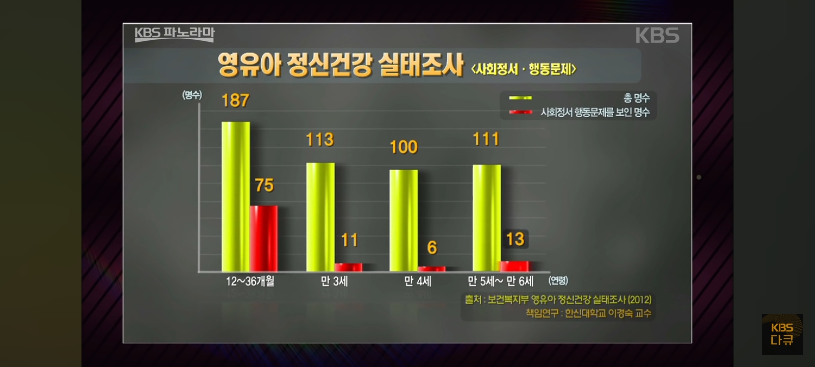 3살까지의 영유아 중 75명이 불안정한 정서를 보이는 것으로 조사되었었다.