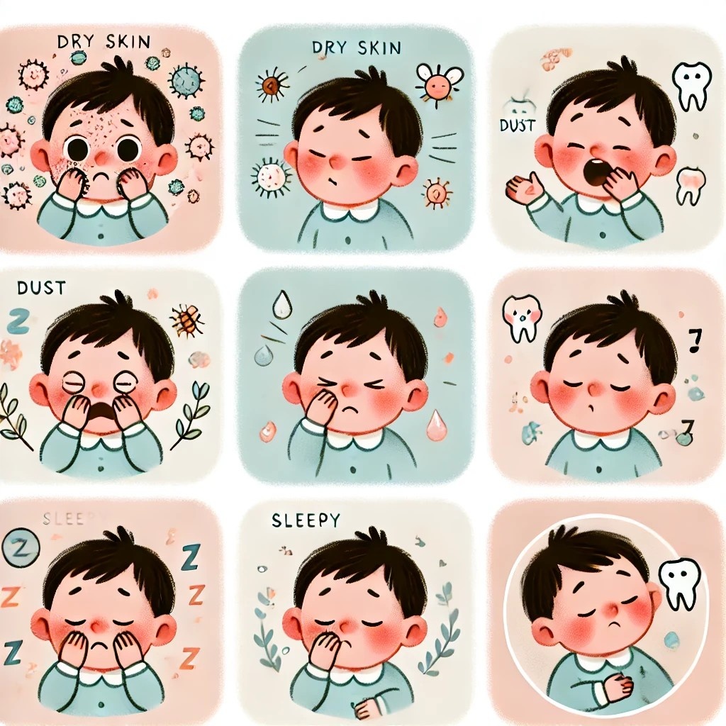 ✔️ 감기나 비염이 있으면 코가 답답해서 얼굴을 문지르는 경우가 많아요.