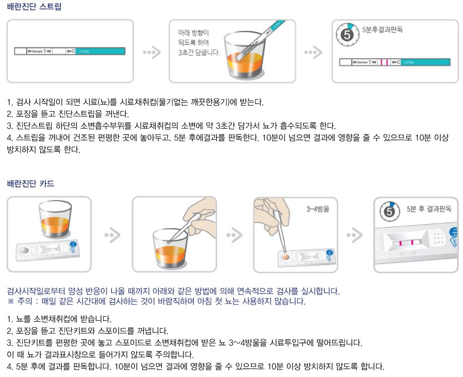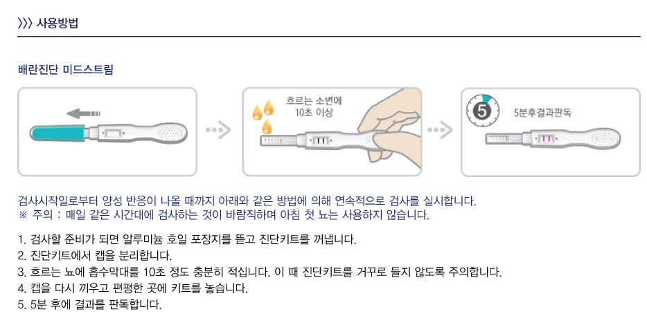 배란테스트기는 황체 호르몬(LH)를 진단하는 키트입니다